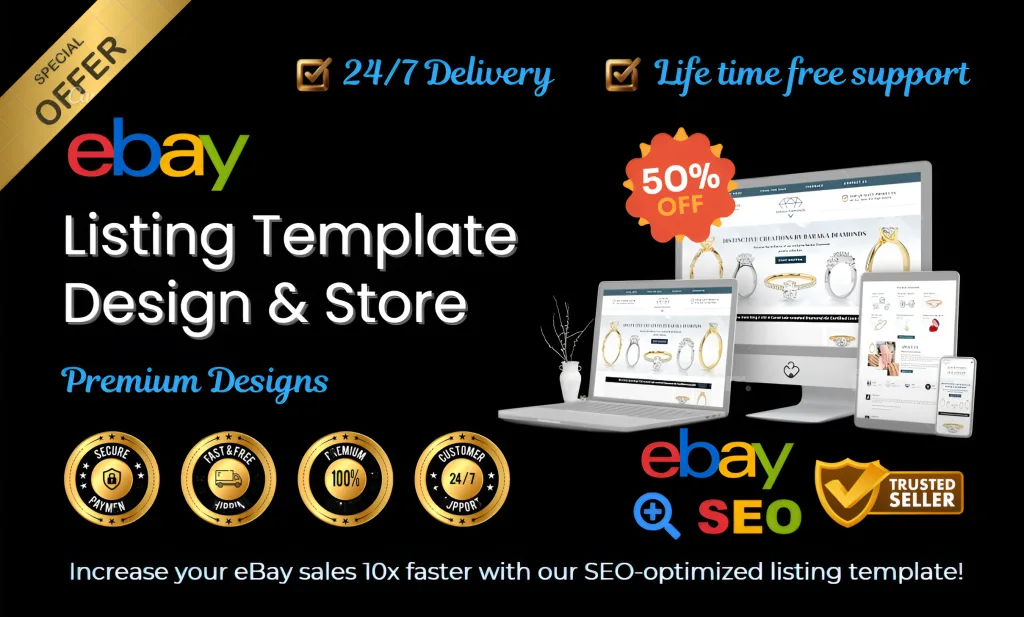 We design custom eBay templates, optimize store layouts, and manage product listings for a seamless, branded shopping experience that boosts trust and sales.